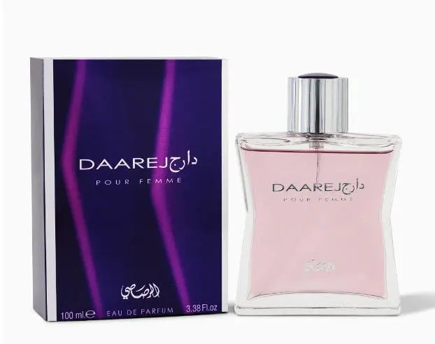 Daarej Pour Femme is a dreamy, fruity-floral fragrance with a unique green accord in the opening notes. Daarej for women is a dreamy, fruity-floral fragrance with a unique green accord in the opening notes. The floral bouquet in middle notes adds softness and romance to the perfume. Amber and exotic patchouli seduce the animalistic musk meandering through the earthy creaminess of sandalwood sweetened by vanilla and caramel.