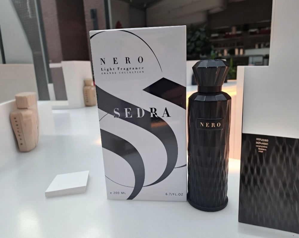 Nero Perfume 200ml by Sedra Perfume is a captivating unisex fragrance that opens with fresh bergamot, spicy black pepper, and juicy plum. Its heart reveals a floral blend of rose, davana, jasmine, ylang-ylang, and soothing cedarwood. The scent settles into a warm, inviting base of amber, musk, caramel, vanilla, benzoin, and sandalwood, creating a rich and lasting aroma perfect for any occasion.