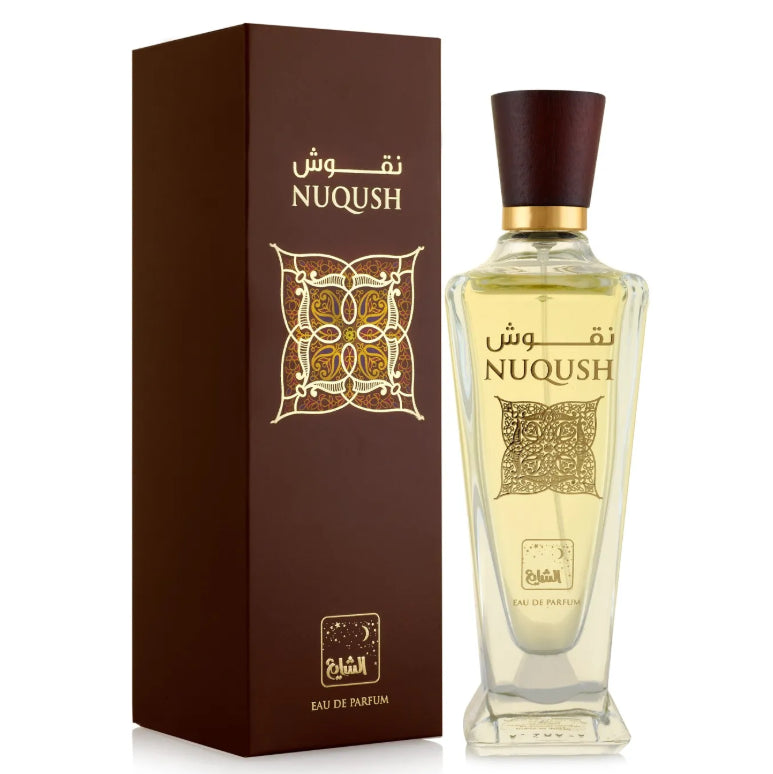 Nuqush Perfume by Al Shaya Perfumes is a unisex fragrance in a 100 ml bottle that blends aromatic and fresh elements. It features top notes of star anise, bergamot, and ozonic accords for a crisp opening. The heart combines fresh notes with angelica seeds, adding a subtle herbal touch. The base is grounded with warm cedarwood, Haitian vetiver, and amber, creating a balanced and enduring scent perfect for daily wear or special occasions.