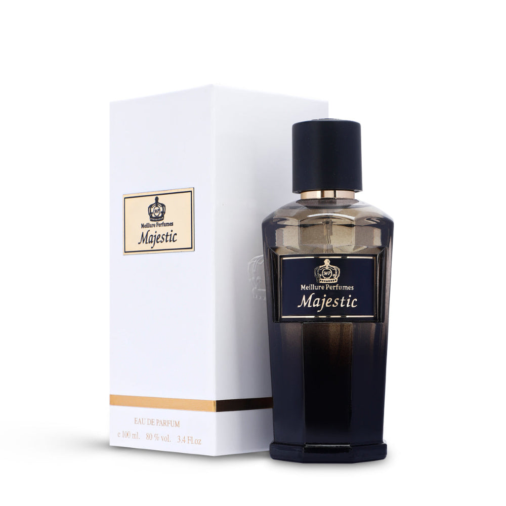 Experience the enchanting blend of citrus, rose, and musk in Majestic Perfume 100ml by Meillure Perfumes. This sophisticated fragrance captivates with fresh citrus top notes, a delicate rose heart, and a warm musk base, creating an unforgettable scent that lingers elegantly throughout the day. Perfect for those who desire a lasting aroma that exudes confidence and grace.