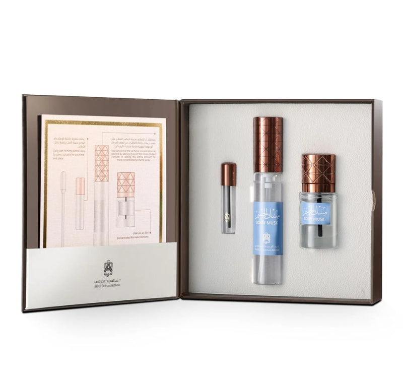 A collection in which luxury and unique aroma combine to form an exceptional experience. It contains in its heart a blend of the finest types of body musk, extracted with the utmost care from granite rocks and the wonderful mountains of Europe, to leave a refreshing and seductive imprint on your skin. To add a charming touch to your elegance, it is accompanied by a 30 ml body musk perfume, emitting irresistible charm in every spray. To complete your unique beauty, the set includes a special small box to hold your favorite aromatic secrets and accompany you on every journey.